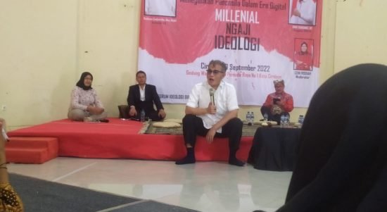Ratusan pemuda Cirebon mengaji teknologi kepada Anggota Dewan SMSI Pusat, Budiman Sudjatmiko di Gedung Wanita, Sabtu 10 September 2022. Secara antusias mereka